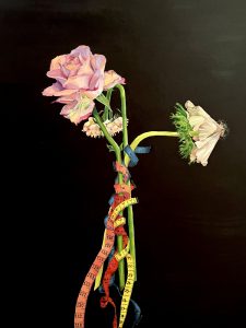 My work is designed to find what lies below the surface, carefully placing chosen objects to unfold more than is initially expected. Full of colour and complexity, each piece begins from wanting to pass on a narrative, it could be how I feel at seeing something on the news, to highlighting an experience we all share, or even to tell a person’s story beyond the initial appearance. Even still life is selected to be different from what we expect.