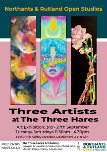 This September is the annual launch of the Northants & Rutland Open Studios with over 130 venues and 325 artists taking place – wow what a number! One of these venues is The Three Hares Art Gallery in Olney which is hosting a free collective exhibition with a difference, as three very wide-ranging artists celebrate their different medium and styles from an intriguing and well-curated exhibition, to artwork prizes and demonstrations to boot.